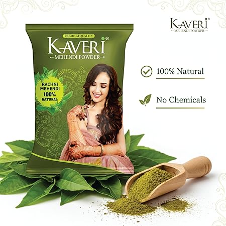 100% Herbal Henna & No chemicals - Kaveri Mehendi Powder is 100% natural & herbal mehendi powder, prepared from premium quality Henna leaves. Kaveri Mehendi Powder is being processed in our manufacturing unit, with stringent care and gone through with various quality check process and checked on different quality parameters in order to keep up the richness of Kaveri Brand.